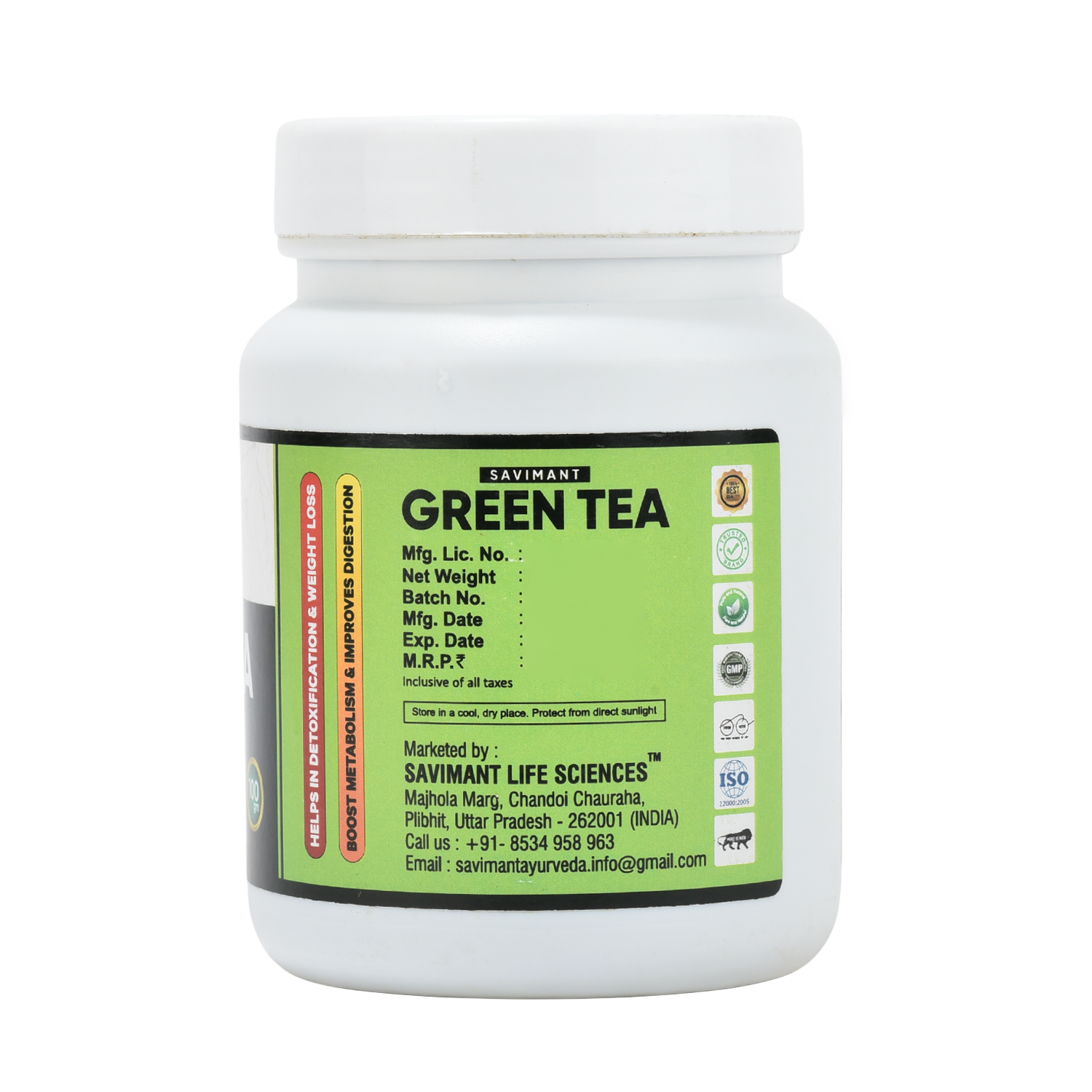 Savimant Green Tea is a natural herbal tea crafted from pure Camellia Sinensis leaves to bring you the perfect balance of taste, health, and wellness. This 100g pack is loaded with antioxidants that help detoxify the body, fight free radicals, and strengthen the immune system. Known as one of the best green teas for weight loss, it boosts metabolism and supports fat burning, making it an effective slim tea for weight loss. Regular consumption not only helps in managing weight but also improves digestion, controls bloating, and promotes overall gut health.