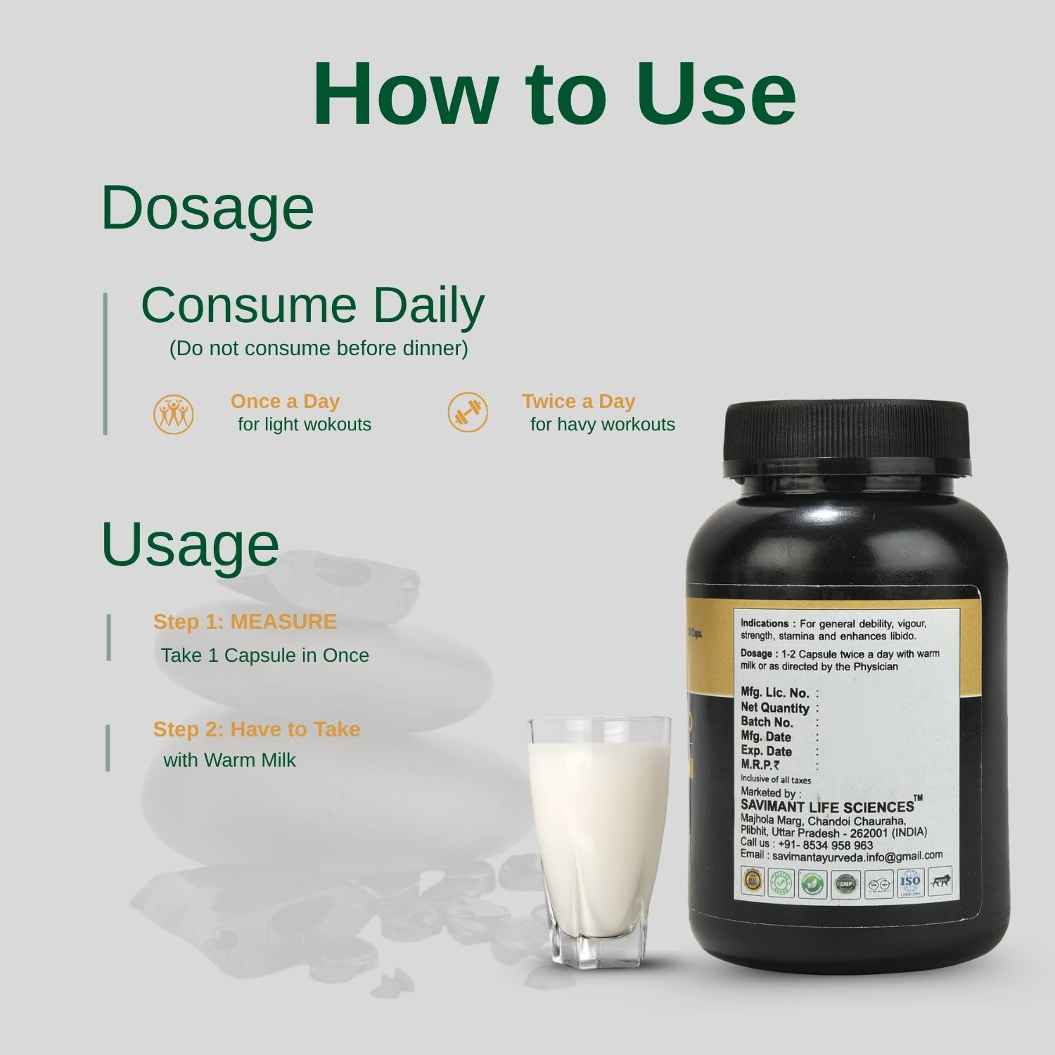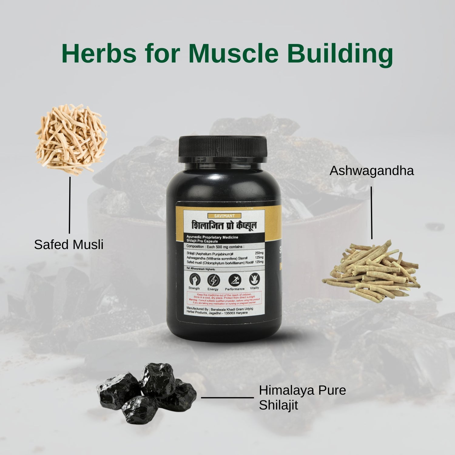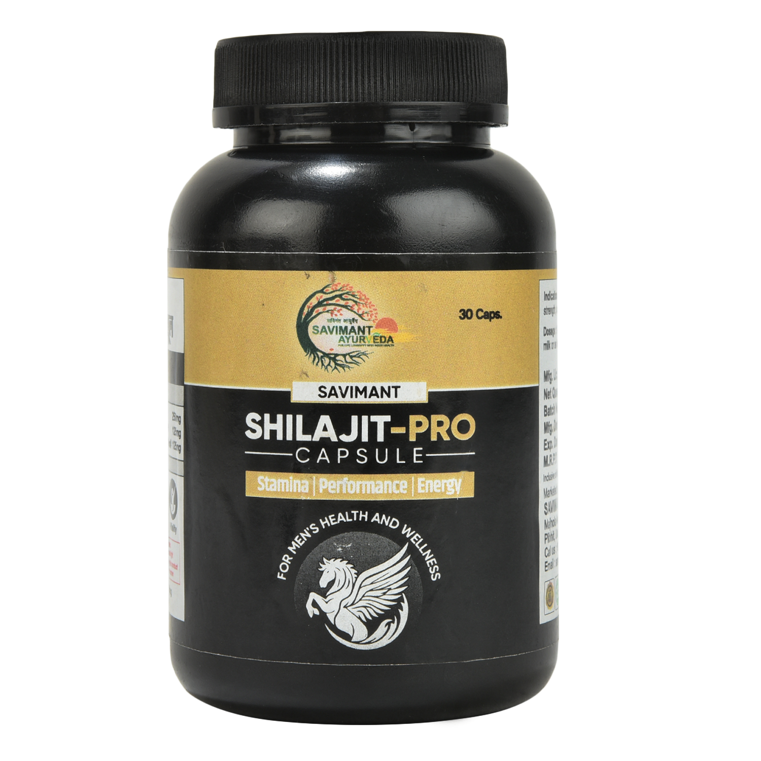 Savimant Shilajit Pro Capsules are a premium Ayurvedic supplement crafted from pure and authentic Himalayan Shilajit, known for its extraordinary health benefits. Enriched with fulvic acid and more than 80 essential trace minerals, these capsules are designed to restore energy, strength, and stamina naturally. Traditionally praised in Ayurveda as a powerful rejuvenator and vitality booster, Shilajit is widely recognized for improving strength, endurance, and physical performance. It helps combat general debility, weakness, and fatigue while enhancing energy levels for an active lifestyle. For men, Shilajit Pro works as a natural testosterone and libido booster, supporting reproductive health, vigour, and confidence. Apart from physical benefits, Shilajit also supports mental clarity, stress reduction, and improved focus, making it a complete supplement for overall well-being. The mineral-rich content helps strengthen immunity, promote healthy aging, and improve nutrient absorption in the body. Dosage: Take 1–2 capsules twice daily with warm milk or lukewarm water, or as directed by your physician. Regular use ensures best results and sustained improvement in energy, stamina, and overall health. Savimant Shilajit Pro Capsules are 100% natural, safe, and free from additives or artificial chemicals, making them suitable for long-term use. Whether you are looking to improve stamina, restore vitality, or support men’s health naturally, this Ayurvedic supplement is the ideal choice for a stronger, healthier lifestyle.